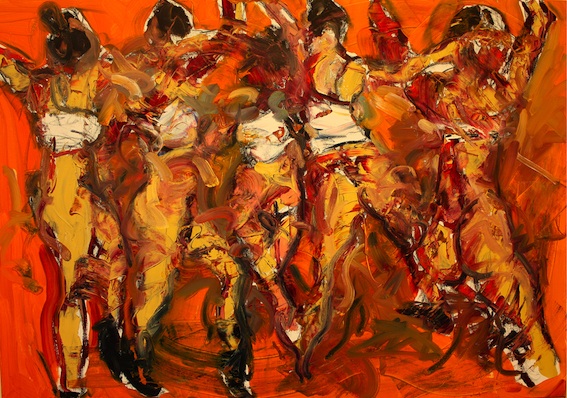 The paintings are a look at the personality of the dancer, their deep belief and involvement, the paintings make reference to the fact that they constantly question their movement, their commitment is deep. The paintings then battle to express this emotional state that drives them through a beautiful process.